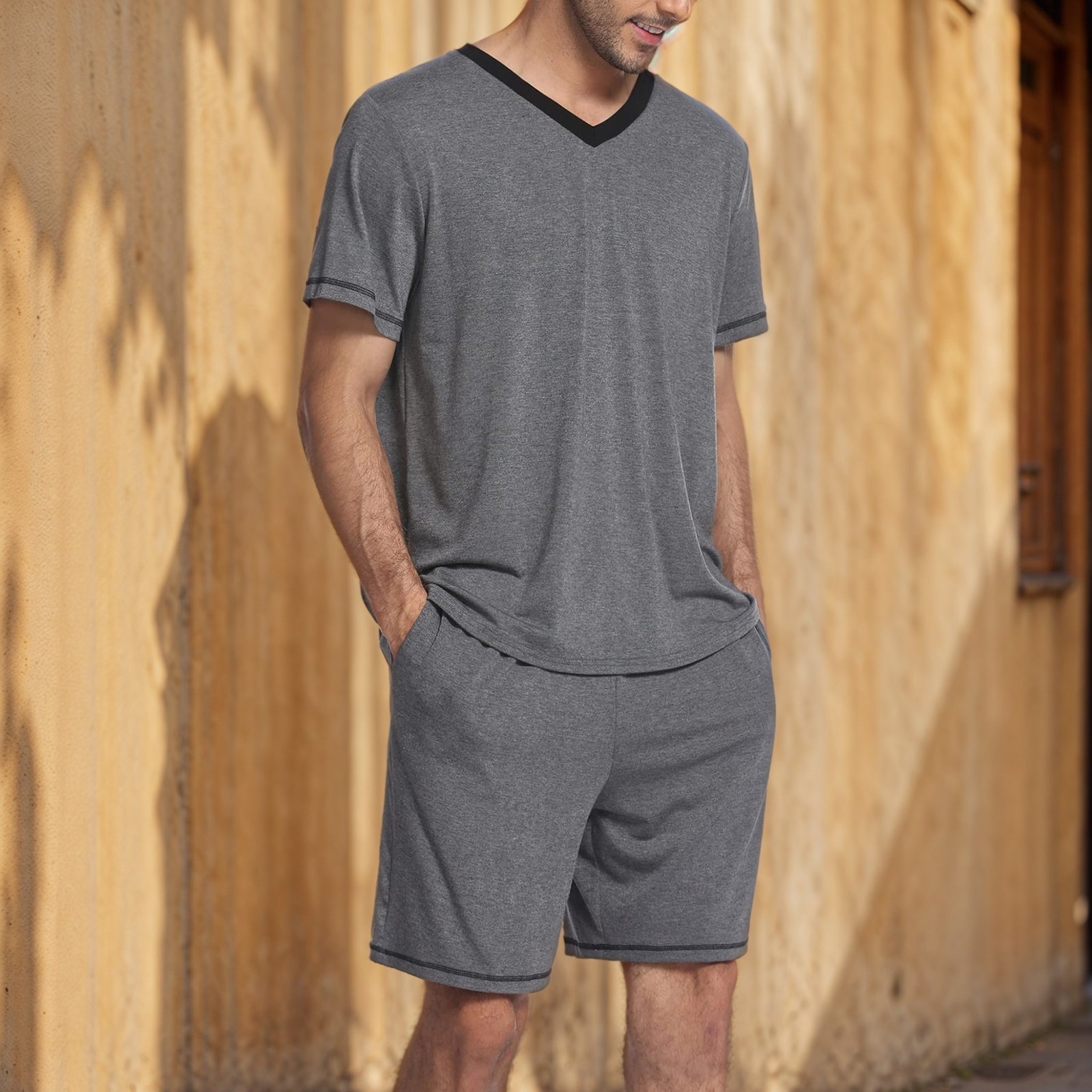 Summer Amazon European and American Men’s Casual suit Short-sleeved Shorts Two-piece Set Contrast Color Sports Casual Men’s Wear